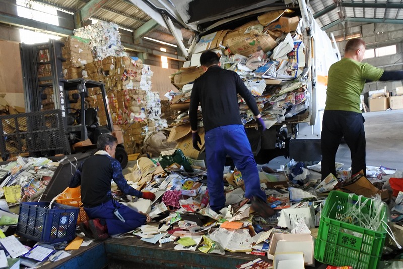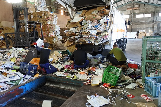 古紙・雑誌・段ボールや缶・ビン・ペットボトルなど自社リサイクル工場にて選別や破砕の作業を行い、ペットボトルはプラスチックの原料、アルミ缶・スチール缶は金属製品の原料、ビンは再利用、ガラスについては路面材の原料等として出荷しております。